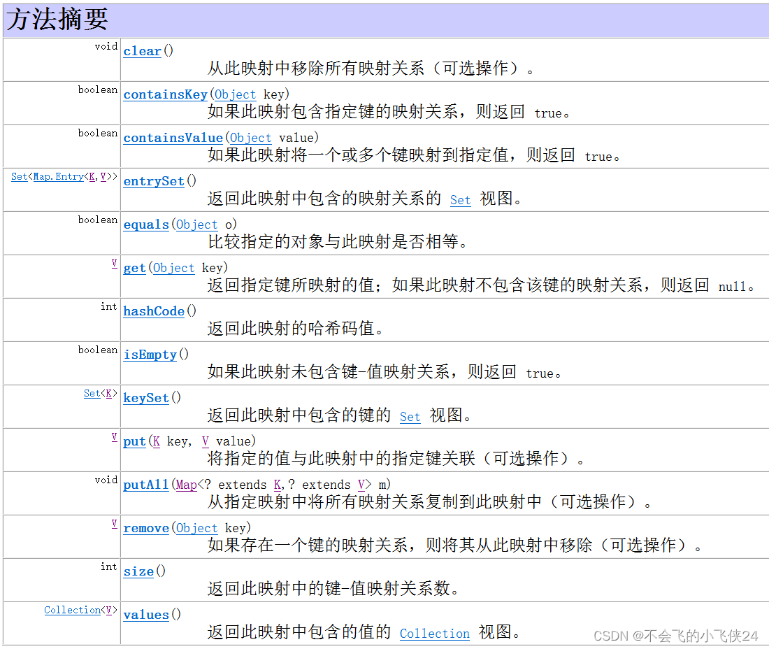 将键映射到值的对象。一个映射不能包含重复的键;每个键最多只能映射到一个值。