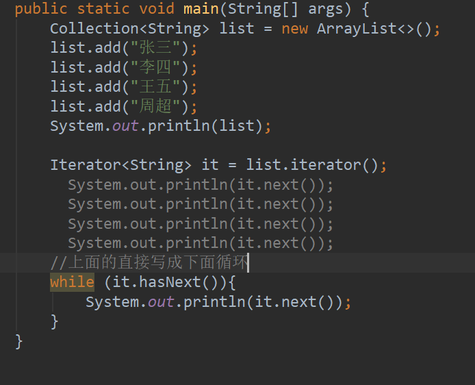 方法一:迭代器(Iterator),迭代器是集合的专用的遍历方式