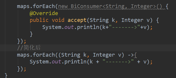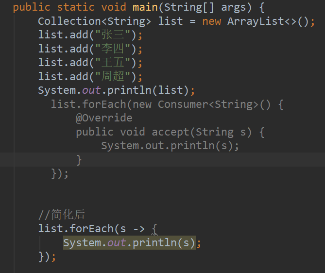 default void forEach(Consumer<? super T> action) 结合lambda遍历集合