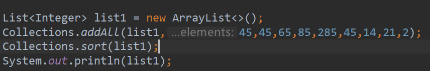 public static <T> boolean addAll(Collection<? super T> c ,T...Elements) 给集合对象批量添加元素