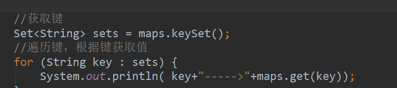 先获取Map集合的全部键的Set集合 遍历键的Set集合,然后通过键提取对应值