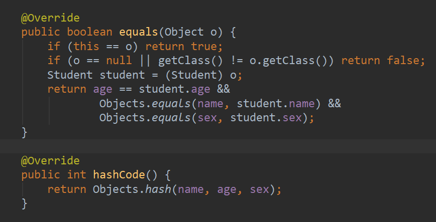 重写对象的hashCode和equals方法(Set集合去重复的原理是 先去判断哈希值,再去判断equals)