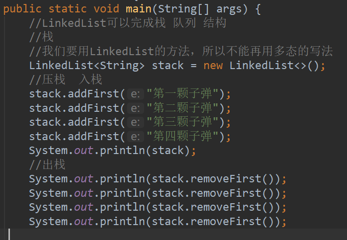 public void addFirst(E e) 在该列表开头插入指定的元素