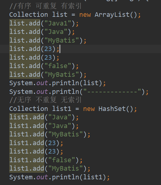 List集合特有方法(List支持索引,所以多了很多索引操作的独特api,其它Collection的功能List也都继承了)