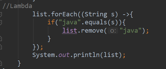 那些遍历存在问题 迭代器遍历集合且直接用集合删除元素的时候出现(见下图1注释部分) 增强for循环遍历集合且直接用集合删除元素时出现(Lambda也是如此,底层也是增强for)(原因是在删除元素时后面的元素会补上,然后索引值又会+1,导致删除不完全)
