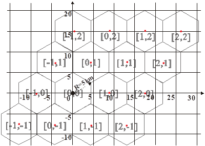 还是看上图,坐标系原点不变,其他所有的点按照一定规则变换到对应正六边形的红点上