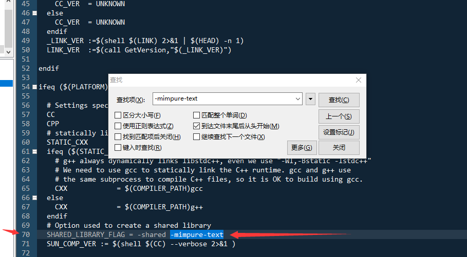 gcc版本问题,这个命令在版本的gcc中已经去除,既然不能降低gcc版本,那 我们就干掉-mimpure-text 该参数