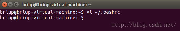 在终端中输入:vi ~/.bashrc 使用vi编辑器打开配置文件