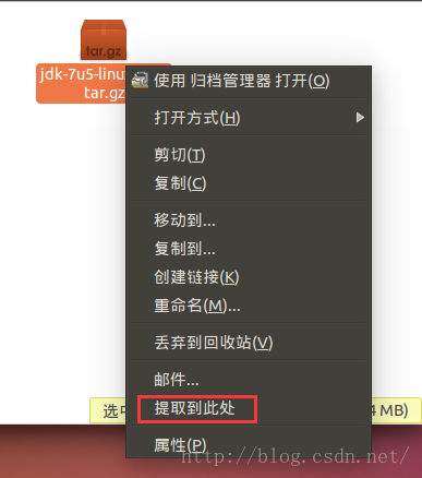 第三步:复制成功之后,右击jdk压缩包,点击“提取到此处”,实现将压缩包解压到此目录