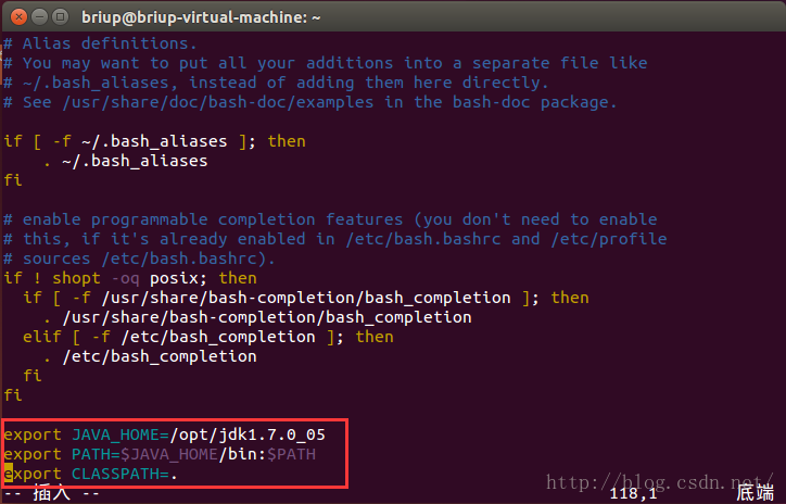 其中的/opt/jdk1.7.0_05为我所放置的jdk的路径及版本名称。你根据自己实际更改
