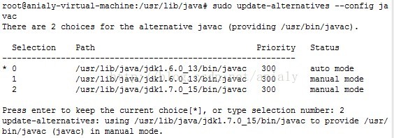 sudo update-alternatives --install /usr/bin/javac javac /usr/lib/java/jdk1.7.0_15/bin/javac 300