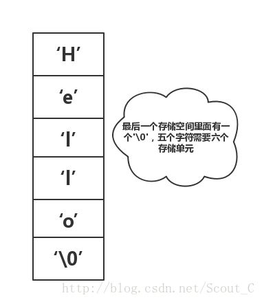在C语言中,字符串就表示为字符的数组。字符串中的最后一个字符是空字符('