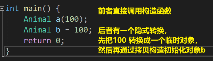尽管如此,这种实现方式的可读性较差,我们不希望自己定义的类支持这种写法,所以我们可以在构造函数的前面加上 explicit关键字