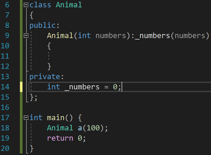 下面这种写法乍一看是在给numbers赋初值,这种说法并不严谨,其实这是C++11引入的新特性,这是在给numbers赋缺省值