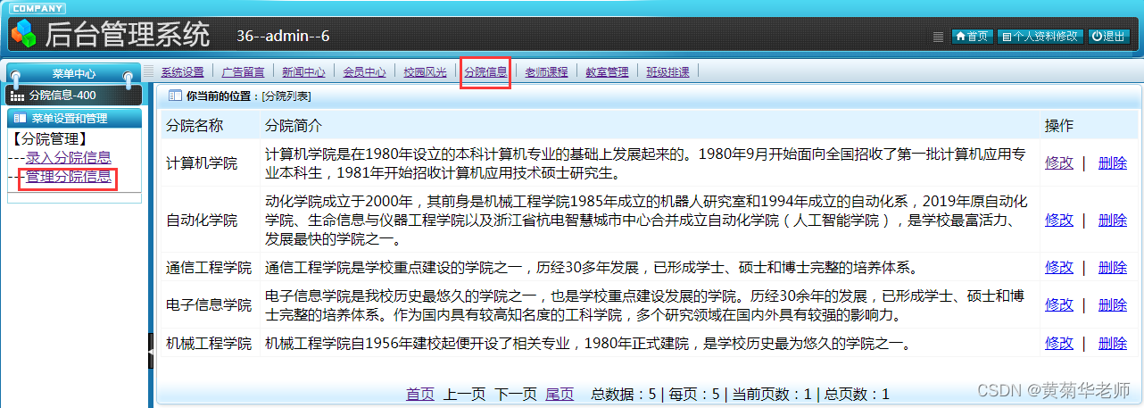 老师管理:管理所有已经录入老师信息,支持修改和删除