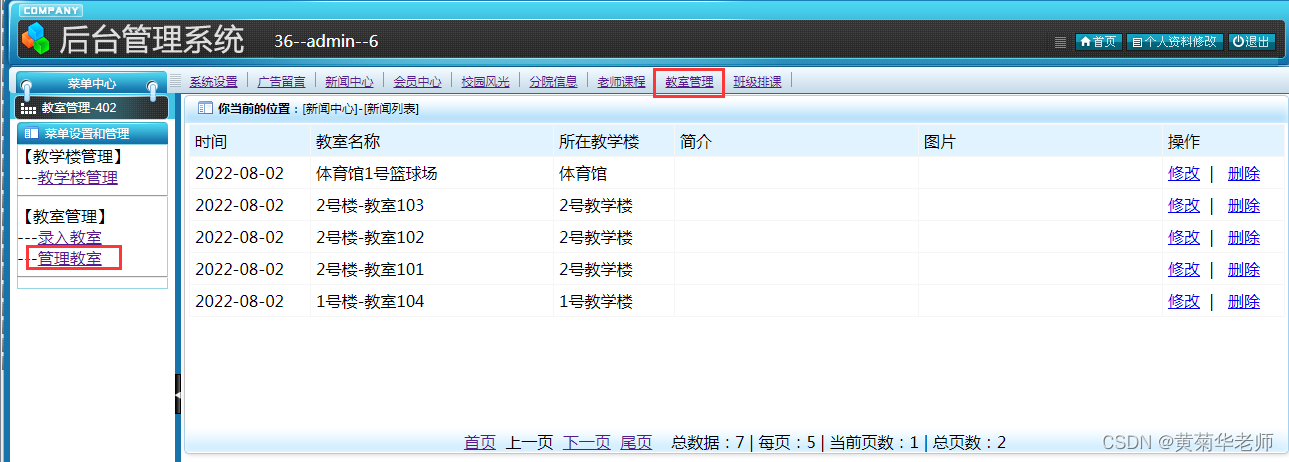 教室楼管理:录入校园有哪些楼,支持修改和删除