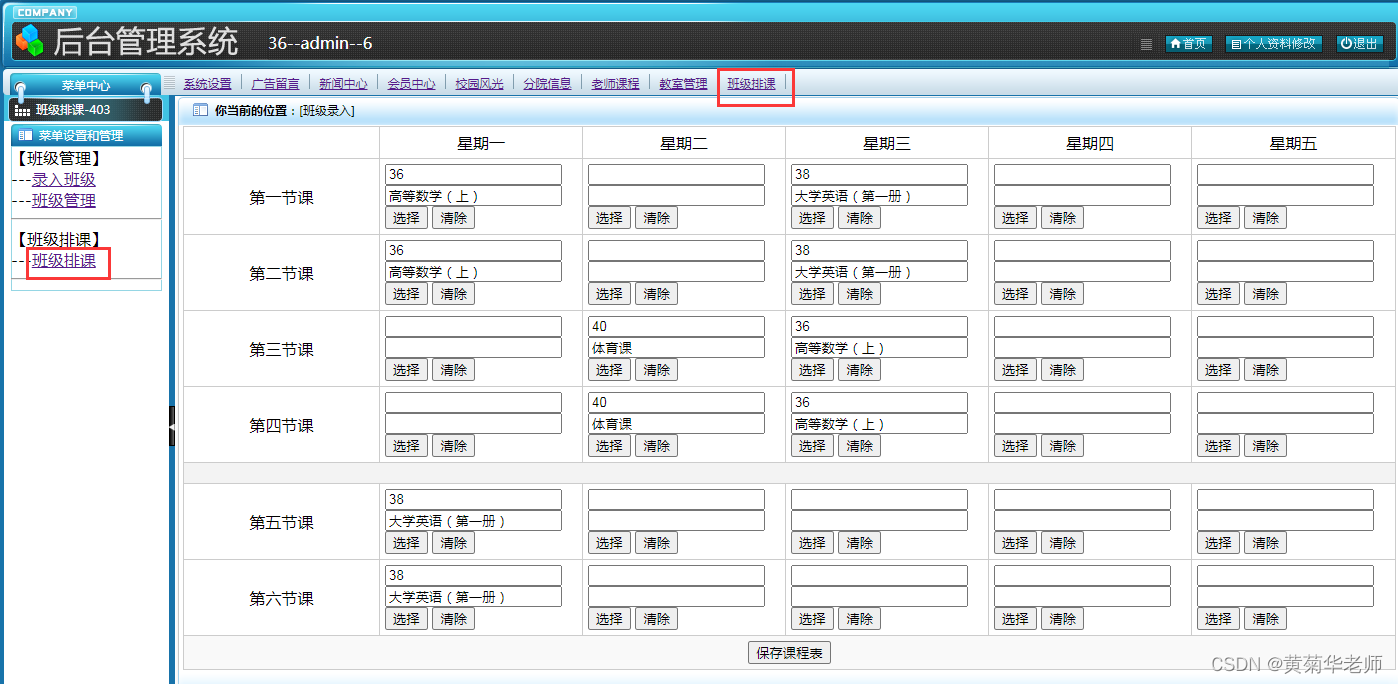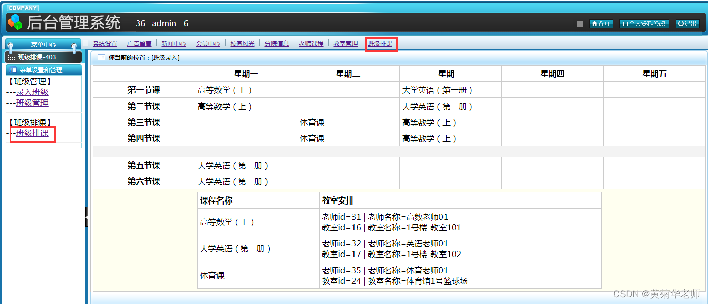 | 班级和排课管理(程序所在位置:views_banji.py) | ||