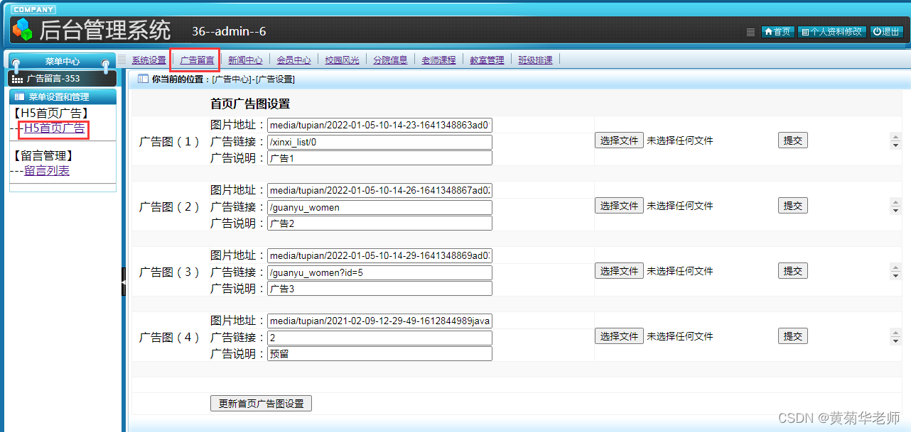 | 系统设置(程序所在位置:views_ad.py) | ||