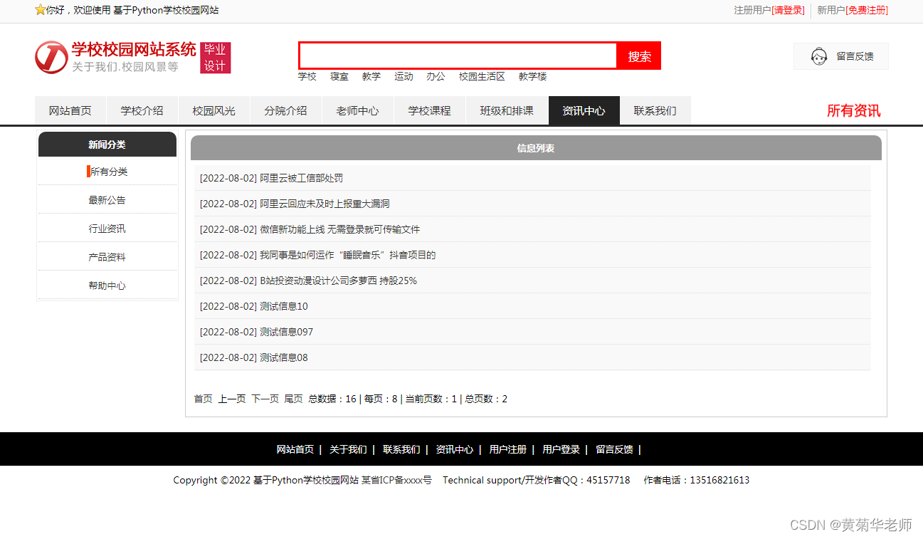 资讯列表:显示所有资讯,可以点击左侧资讯分类筛选