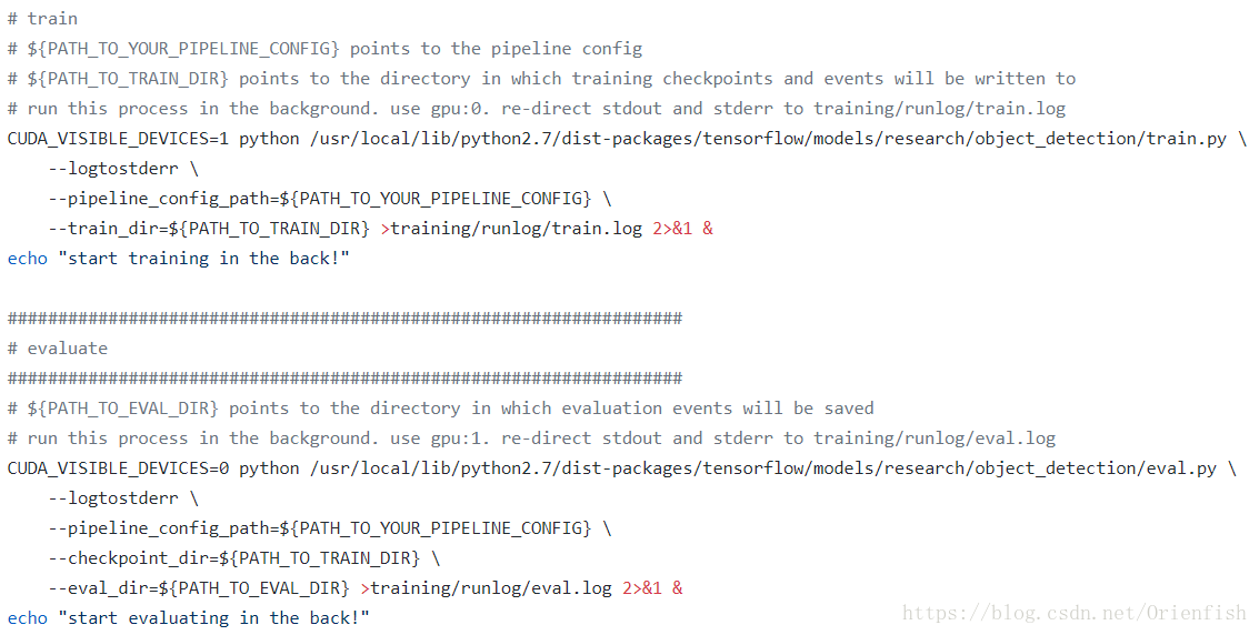 为了方便我把训练的语句写成了脚本run.sh,这样就不用每次敲巨长的命令来启动训练了。为了并行运行三个进程,每运行一个就放到后台去,同时拿一个文件记录log(要不然怎么挂了你都不知道)。然后检测当训练进程结束后就杀死检测的进程。启动训练和测试的脚本代码如下。