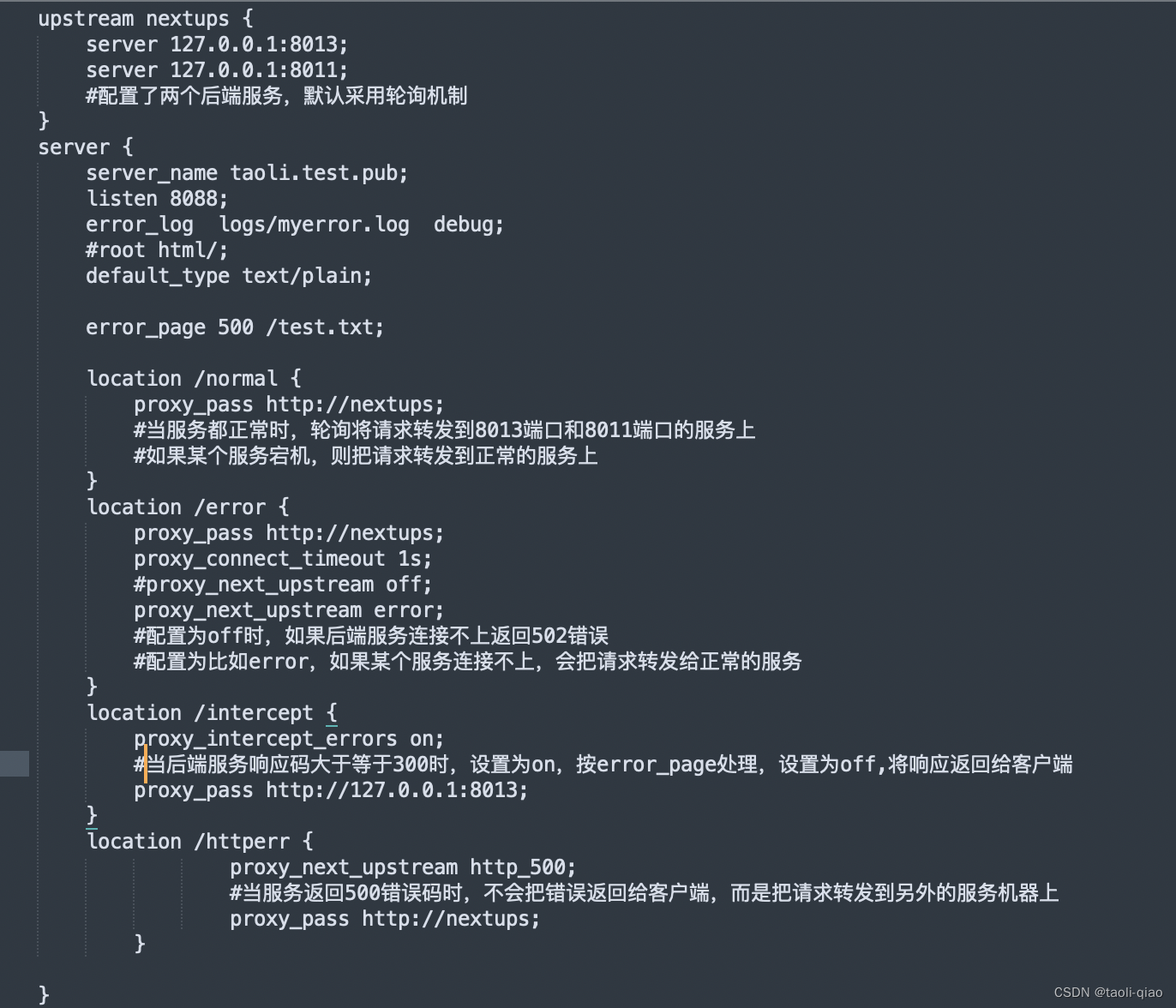 通过proxy_next_upstream模块,可以对后端服务返回的错误进行容错处理,语法格式:proxy_next_upstream error|timeout|invalid_header|http_500 |http_xx|off;不同参数的含义如下
