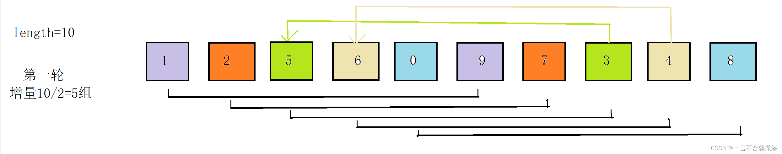 - 先根据数组的长度/n,获取增量k(第一次n=2)