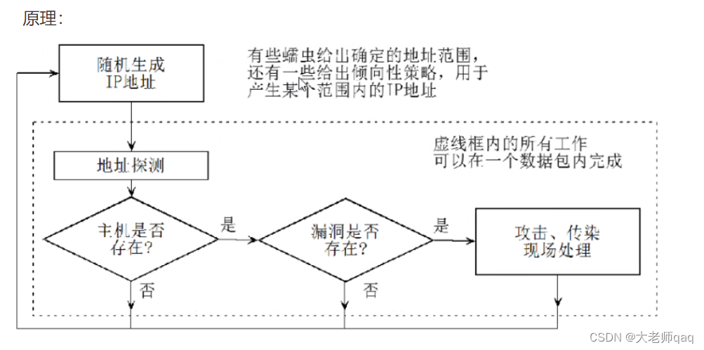 与上述病毒区别:蠕虫是一个完整的程序;自动传播;自动繁殖