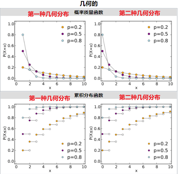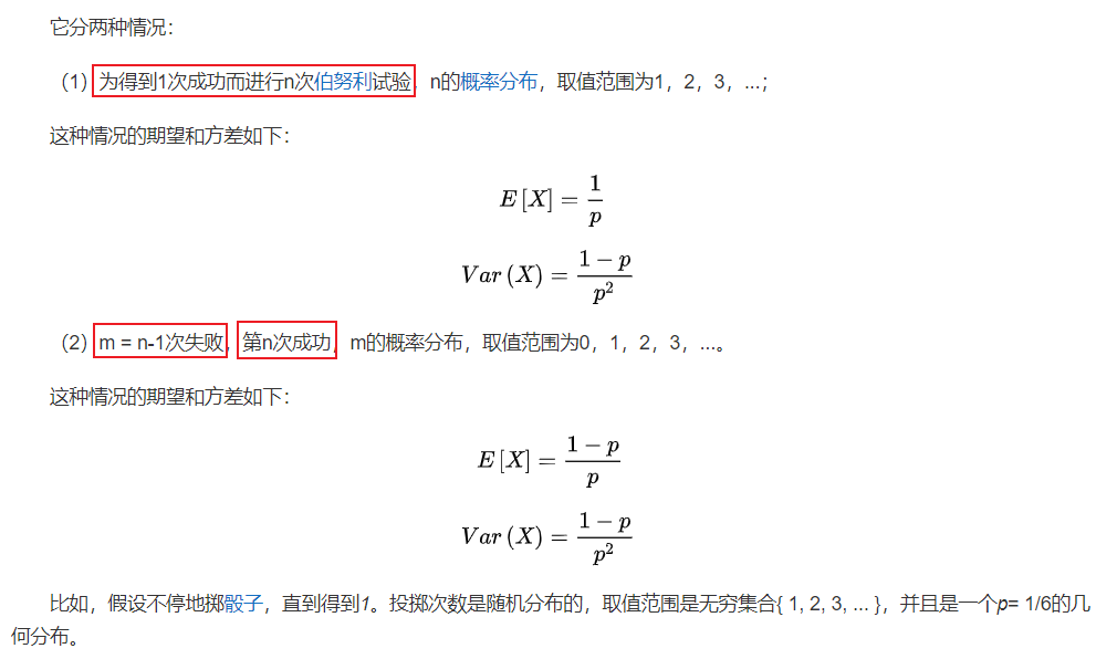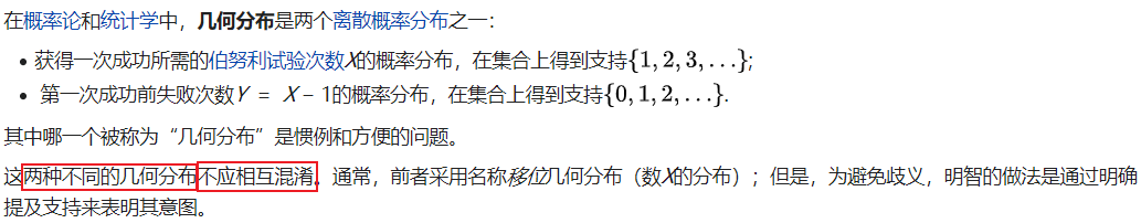 第一种情况对应上面第一种几何分布、第二种情况对应上面第二种几何分布