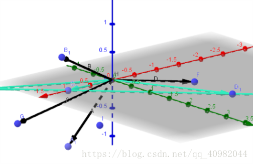的三个基向量,注意到一点,他有三个基向量,但是只有两个维度,也就是说一个平面就能放下他的向量空间,如图很明显