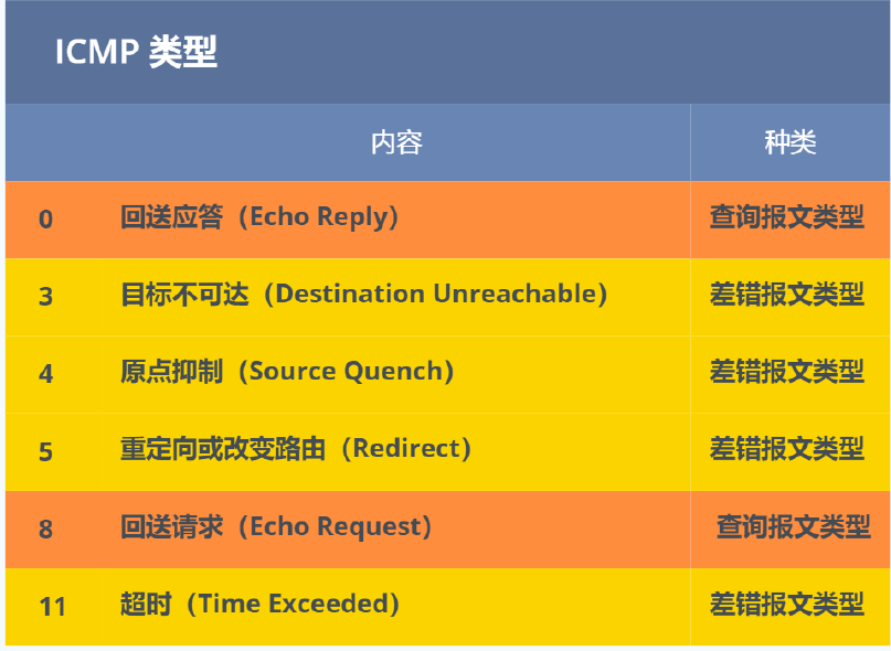 - 另一类是通知出错原因的错误消息,也就是差错报文类型