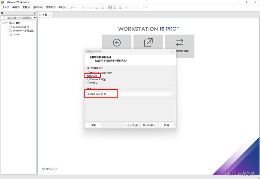 6、选择客户机操作系统为“Linux”