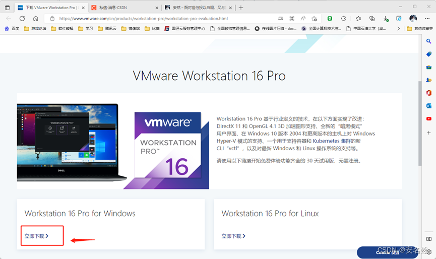 官网下载地址:下载 VMware Workstation Pro | CN