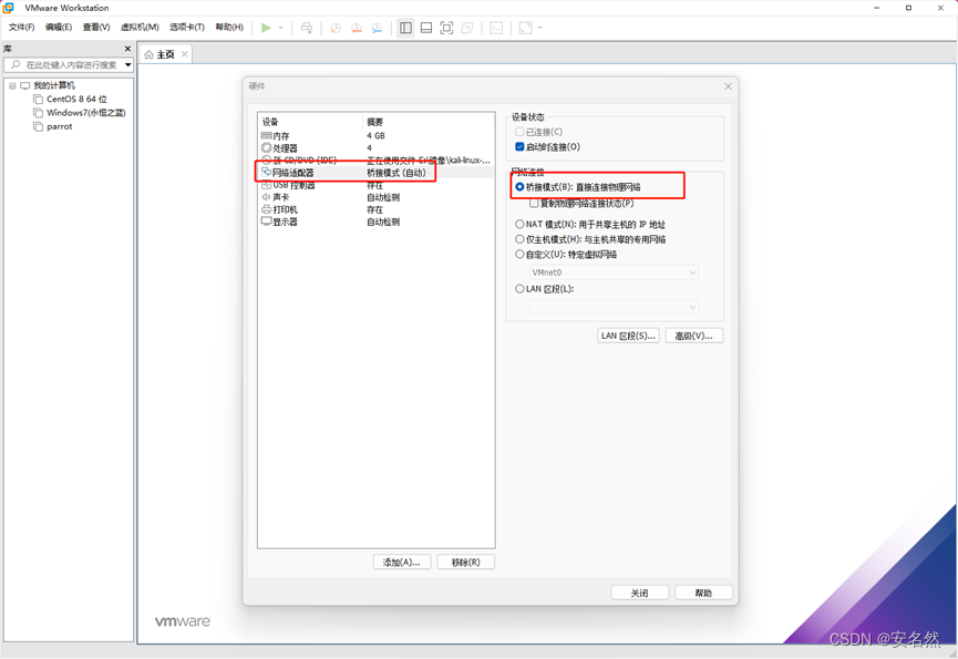 13、网络适配器设置(根据自己网络环境设置,桥接即可)