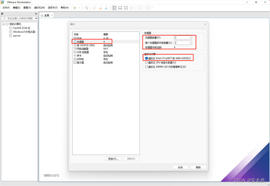 11、处理器设置(建议最低2核起步,虚拟化引擎根据自己情况自定义勾选)
