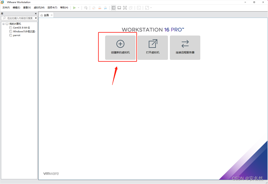 2、打开VM软件选择“创建新的虚拟机”