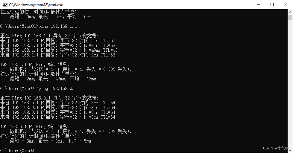 图中的“时间<1ms”是指ping命令从发送数据包开始自动计时,收到数据包后停止计时,巧妙的是这里不需要两个主机的时间同步