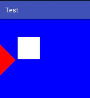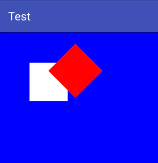 mPaint.setAntiAlias(true); canvas.drawColor(Color.BLUE); mPaint.setColor(Color.WHITE); canvas.drawRect(new RectF(80,80,180,180),mPaint); canvas.save(); canvas.rotate(45); //canvas.rotate(45,200,200); mPaint.setColor(Color.RED); canvas.drawRect(new RectF(80,80,180,180),mPaint); canvas.restore();