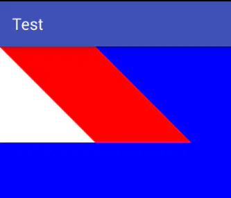 mPaint.setAntiAlias(true); canvas.drawColor(Color.BLUE); mPaint.setColor(Color.WHITE); canvas.drawRect(new RectF(0,0,180,180),mPaint); canvas.save(); canvas.skew(1,0);//画布X轴倾斜45度 mPaint.setColor(Color.RED); canvas.drawRect(new RectF(0,0,180,180),mPaint); canvas.restore();