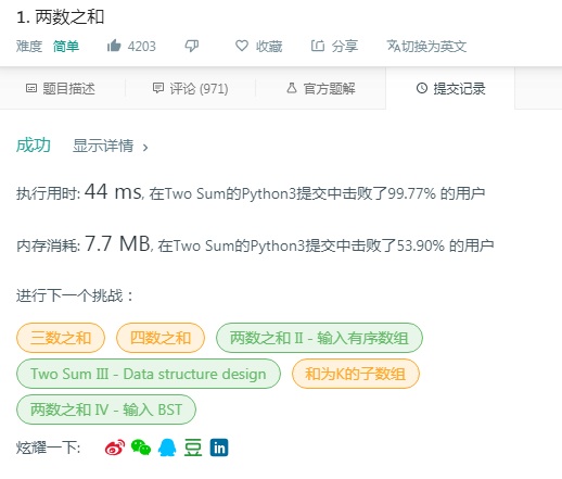 以上就是完美机器猫最近收集整理的关于python Solution LeetCode No.1 TwoSum(两数之和)的全部内容,更多相关python内容请搜索靠谱客的其他文章。