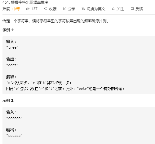 以上就是正直身影最近收集整理的关于LeetCode451的全部内容,更多相关LeetCode451内容请搜索靠谱客的其他文章。
