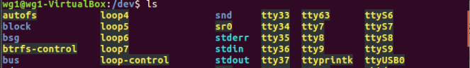 (2)成功安装通过命令安装minicom工具之后,进行串口配置。将SD卡插入开发板卡槽,再通过串口USB Uart调试线连接开发板和电脑,在ubuntu终端打开系统打开设备文件dev查看串口的设备名称,这里的串口名称为ttyUSB0,如下图3-14