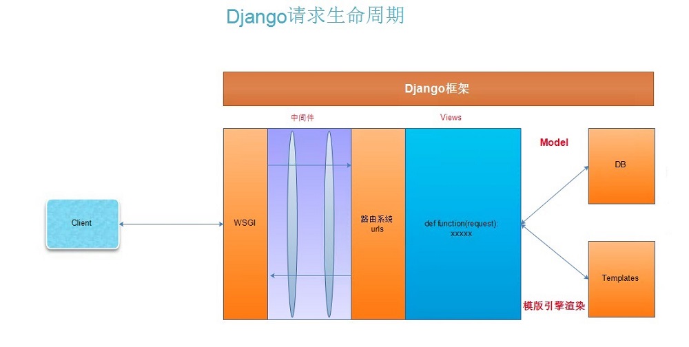 3. 视图函数根据客户端的请求查询相应的数据.返回给Django,然后Django把客户端想要的数据做为一个字符串返回给客户端.