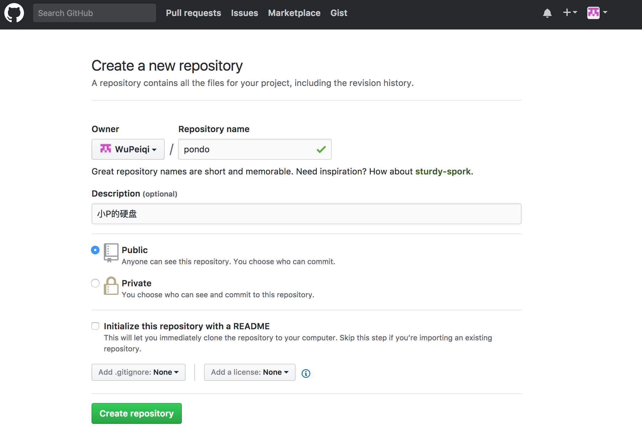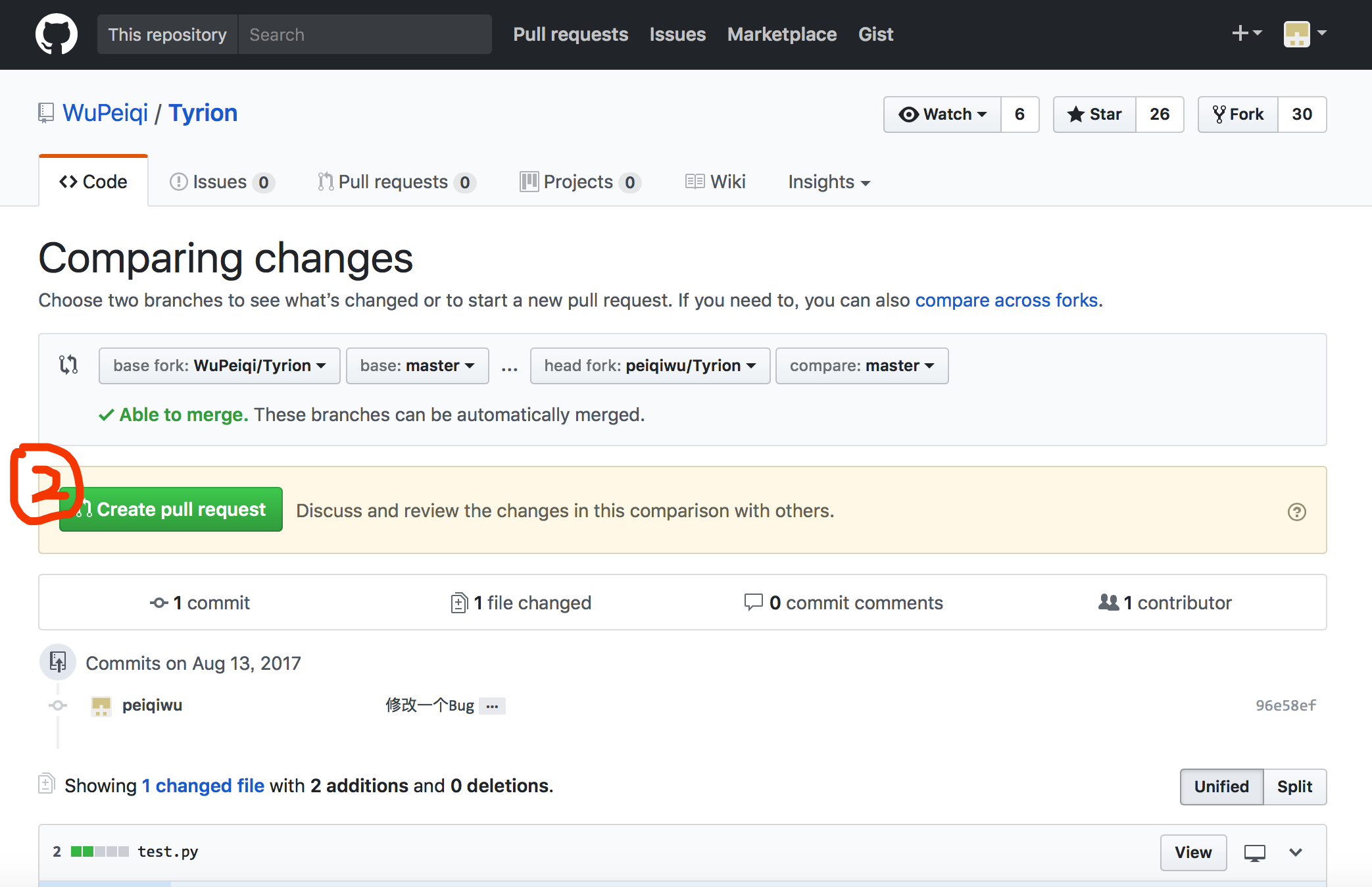 - 创建并提交一个pull request,然后等待原作者是否同意这个pull request,如果同意那么在作者的源代码中就推出现小P提交的功能