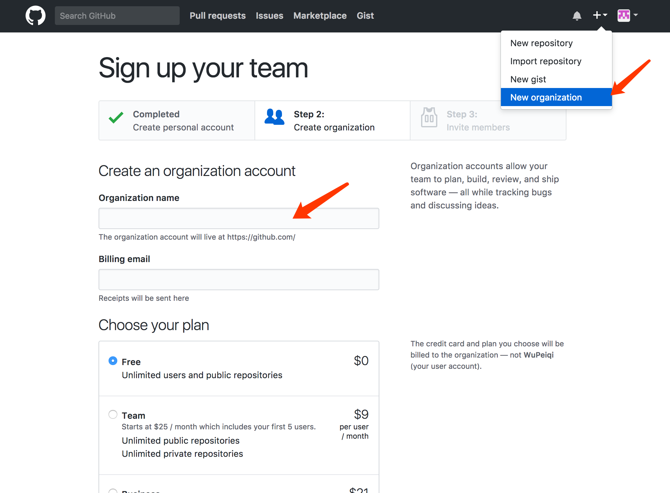 - 用户B提交功能2,无法push,因为GitHub上已经有其他人提交的新代码。
