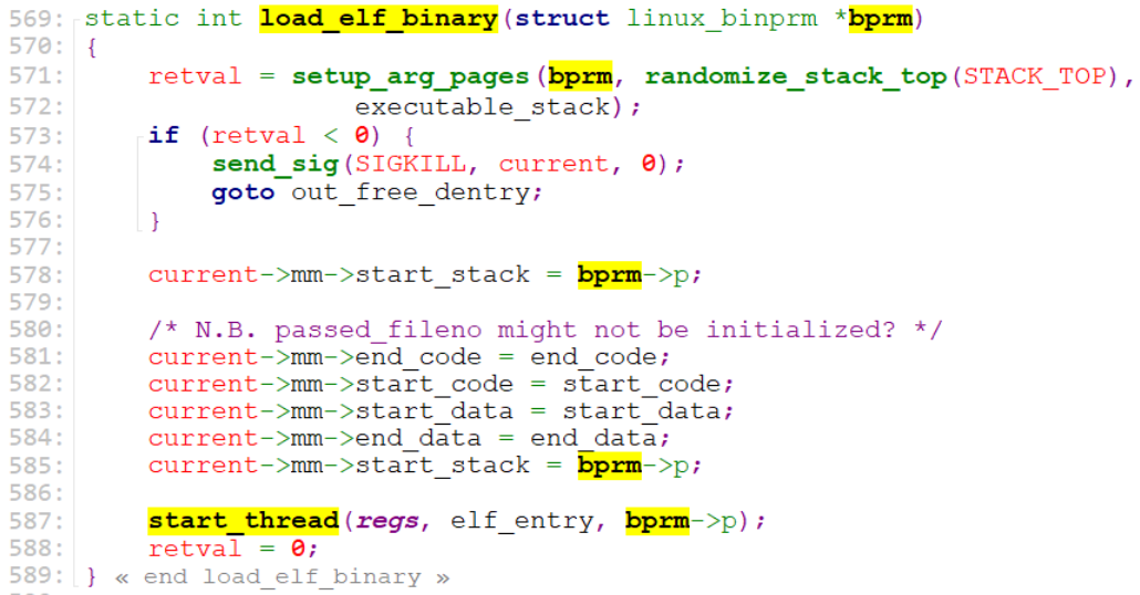 load_elf_binary()用于解析和加载elf可执行文件到内存中。