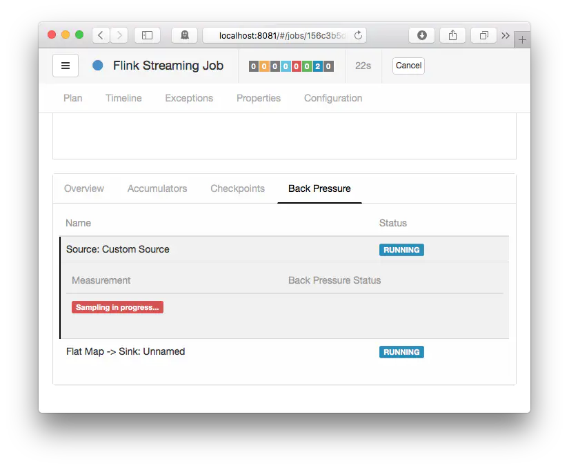 如果采样(samples)显示任务线程卡在某个内部方法调用中,则表示该任务存在背压。