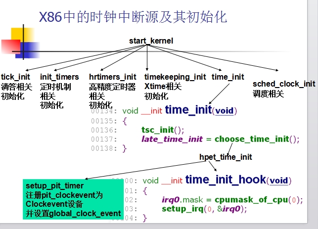 time_init_hook()来设置系统时钟中断处理程序。