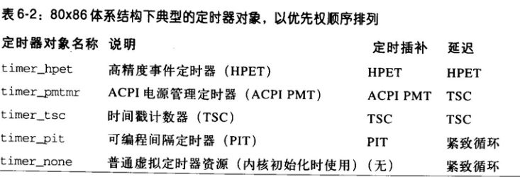 在内核初始化期间,select_timer()函数设置cur_timer指向适当定时器对象(时钟源)的地址。变量timer_cur存放了某个定时器对应的那个的地址,该定时器是系统可利用的定时器资源中最好的。