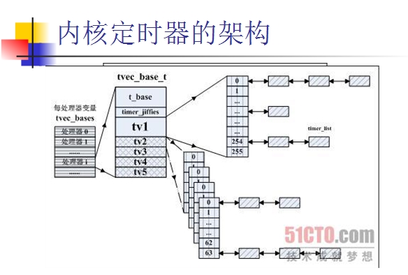 - 成员变量base:该指针变量表明了该内核定时器节点归属于系统中哪一个处理器,在使用函数init_timer()初始化内核定时器节点的过程中,将该指针指向了一个每处理器变量tvec_bases的成员变量t_base。