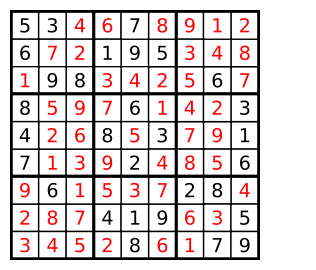 - 数字 1-9 在每一个以粗实线分隔的 3x3 宫内只能出现一次。